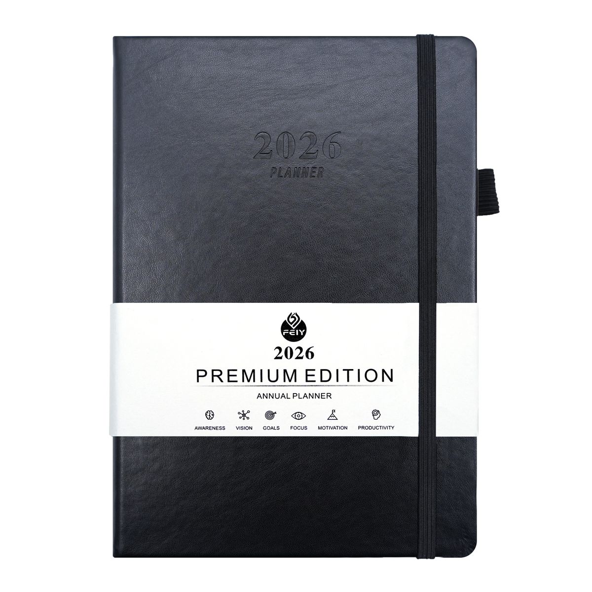 The notebook is made of 192 sheets 80GSM thick paper for easy writing and preventing ink bleeding. From Jan - Dec 2026 with monthly and weekly pages for year-round planning. Starts with 2026 calendar pages and various important information pages for goal setting and thoughts organization. A personalized calendar journal that helps you save time and make memories. PMS available for product color and imprint. Overseas production. Lower quantity available. Includes ocean freight delivered to NY.