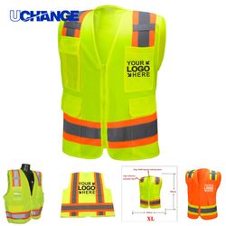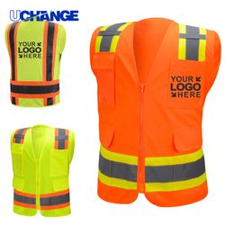 High visibility safety vests is made of 120GSM Polyester material, designed with 5 front pockets with zipper magic poster clamshell closure, 2 large pockets, 1 PVC transparent ID badge holder, 1 flap pocket and 1 pouch holder for flashlight, laser pointer. Reflective strips have spread of the waist, chest, shoulders and back. Safety vest 360-degree protection while you are working under daylight or low light conditions. Two colors are available: Hi-Vis Orange and Hi-Vis Yellow. Custom logo is available. QTY for 500pcs and over by ocean. We can rush service and guarantee the perfect quality.