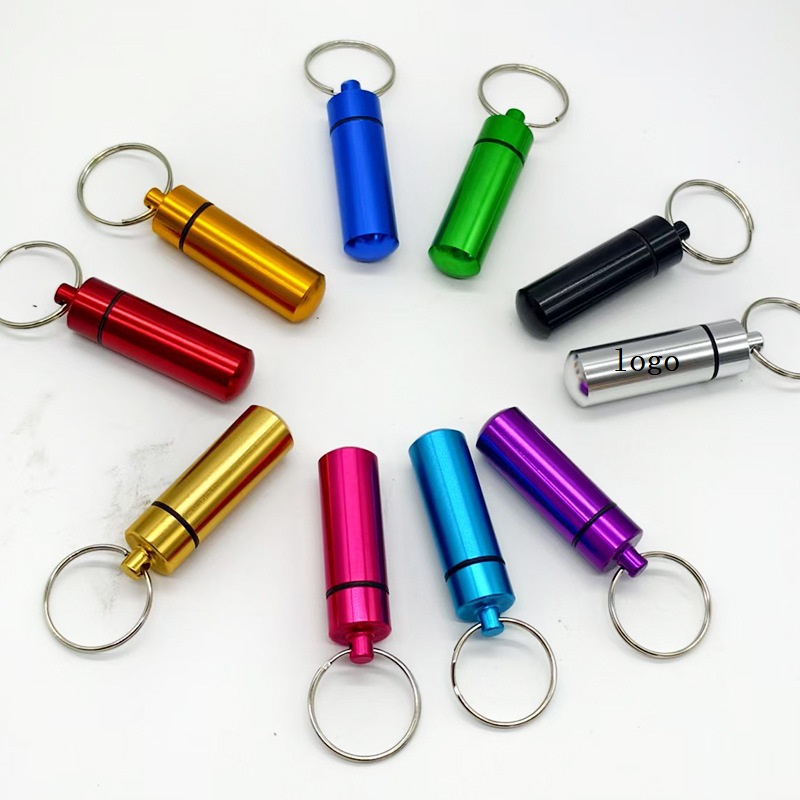 This portable medicine bottle is made of aluminum alloy material. Waterproof and wear-resistant, with a keychain, compact and portable, can store first aid pills or small notes, etc.You can also customize the company logo to increase the company's visibility.