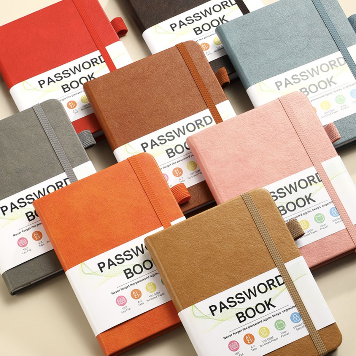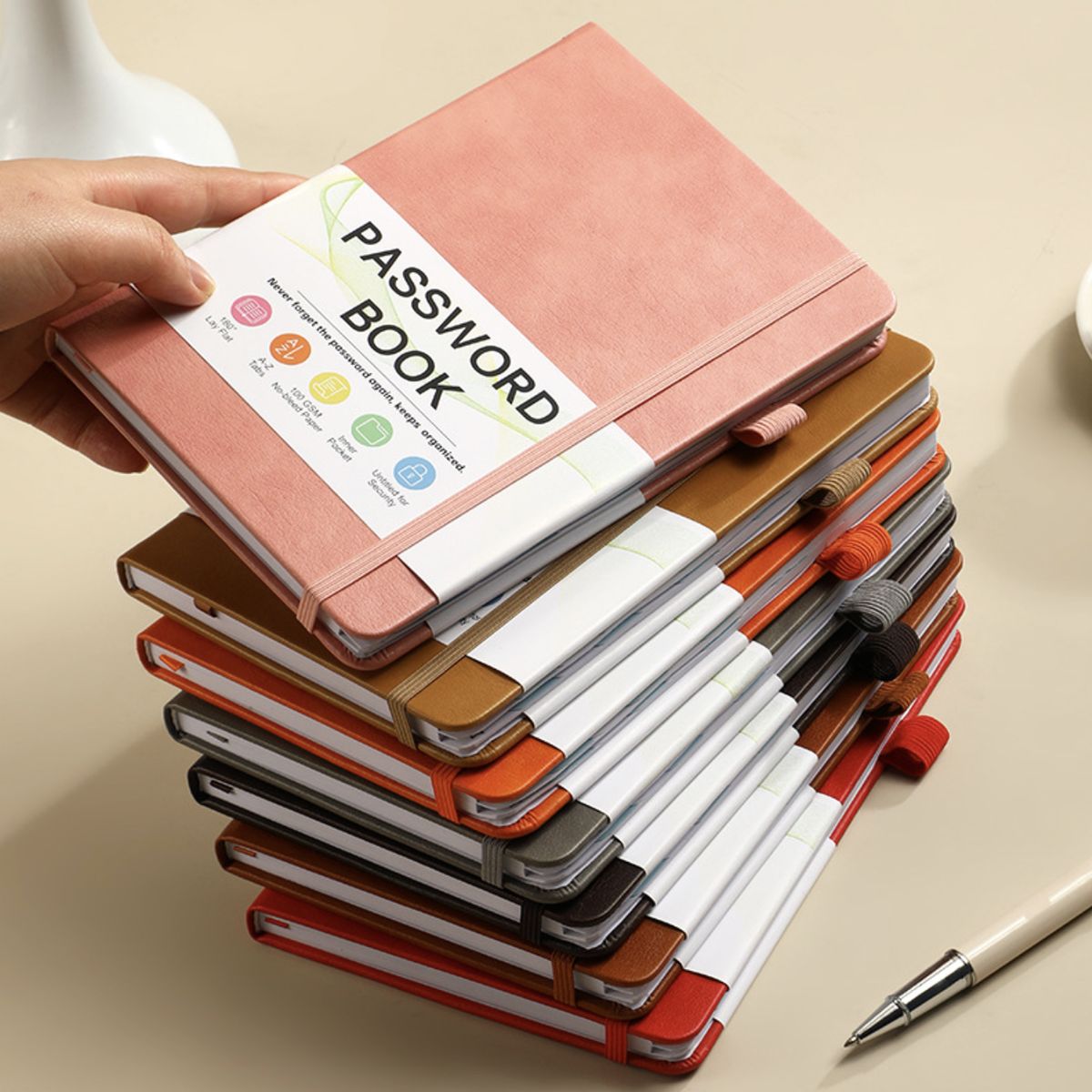 With its A6 size, it is compact and easy to carry around. It features 80 sheets (160 pages) made from high-quality, textured PU leather. The strap design provides added security. Additionally, the pen holder design ensures you always have a pen readily available to jot down your login credentials or other crucial details.