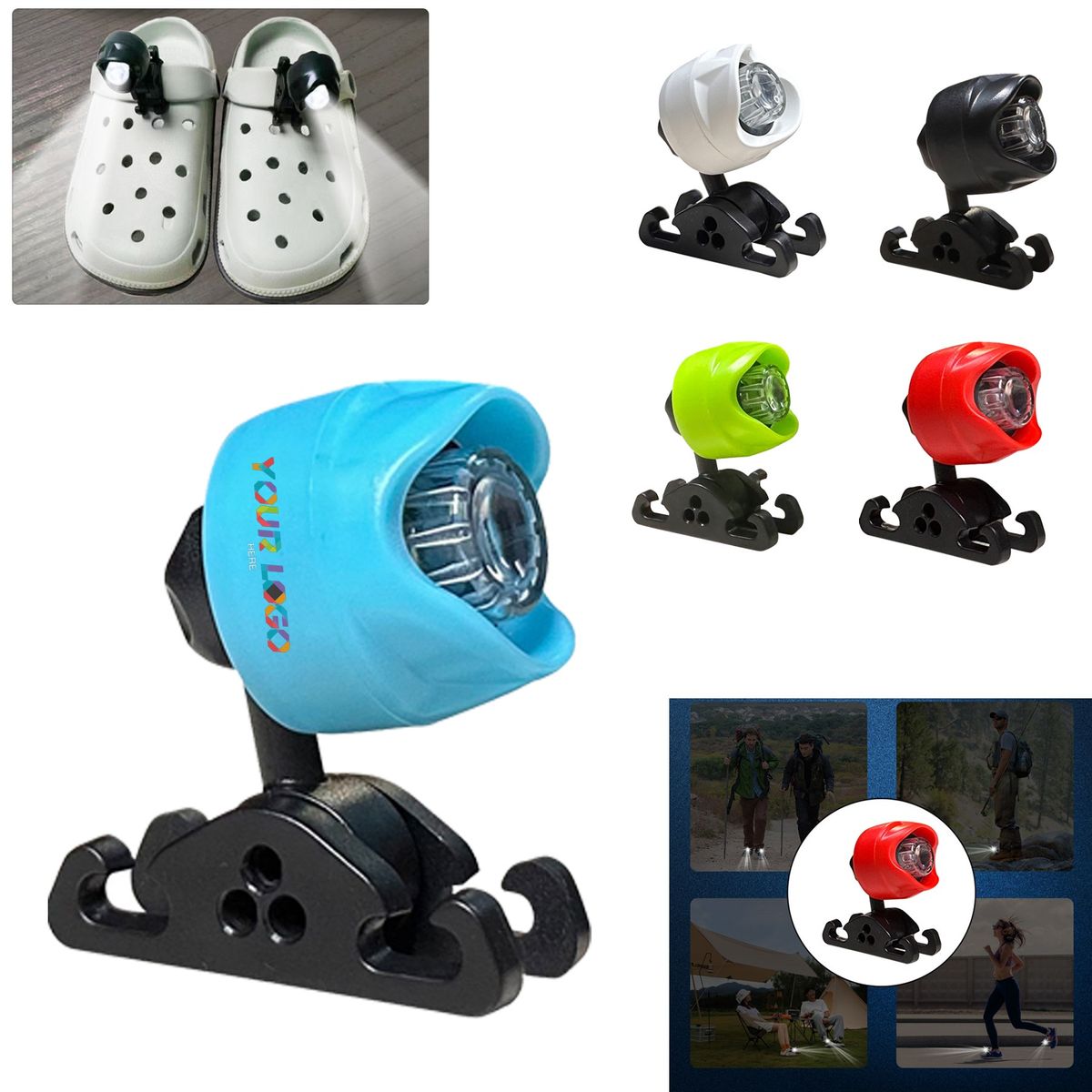 These croc lights are made of ABS plastic, smooth and high polished surface, each light only weights 0.49oz, This croc headlights are easy to attach to your shoes and stay in place, so you needn't worry about slipping off. Press the cap control button continuously to change 3 different modes, including always bright, flashing or slowly flashing. Our flashlight for Crocs is designed to be waterproof, with an IPX6 rating that makes it perfect for use in wet weather conditions.